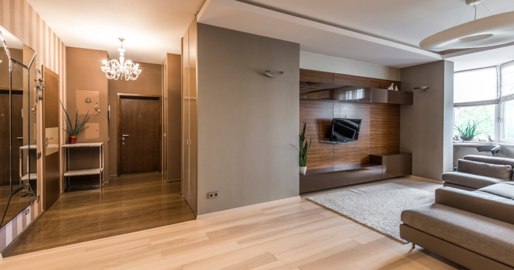 壁紙や床材、さらにはドアの色をバラバラにすると、空間が細かく分断されて見えてしまいます。